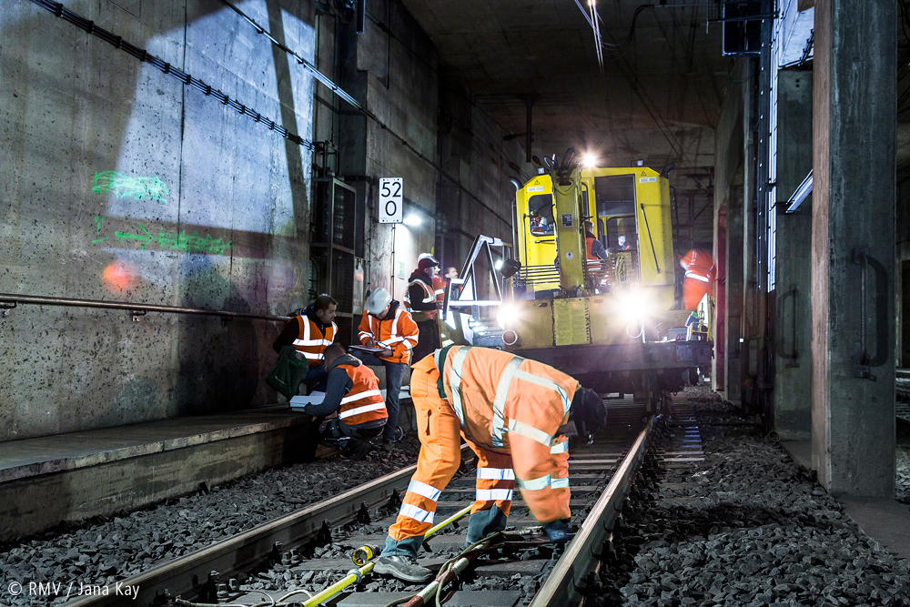 Im Frankfurter S-Bahn-Tunnel werden seit drei Jahren Gleise und Signaltechnik für das neue elektronische Stellwerk erneuert. Einen faszinierenden Blick hinter die Kulissen der Baustelle bietet bis zum 7. Oktober 2017 eine Fotoausstellung im Frankfurter Hauptbahnhof, mit der sich der RMV und die Deutsche Bahn bei den Fahrgästen für das Verständnis bedanken wollen.